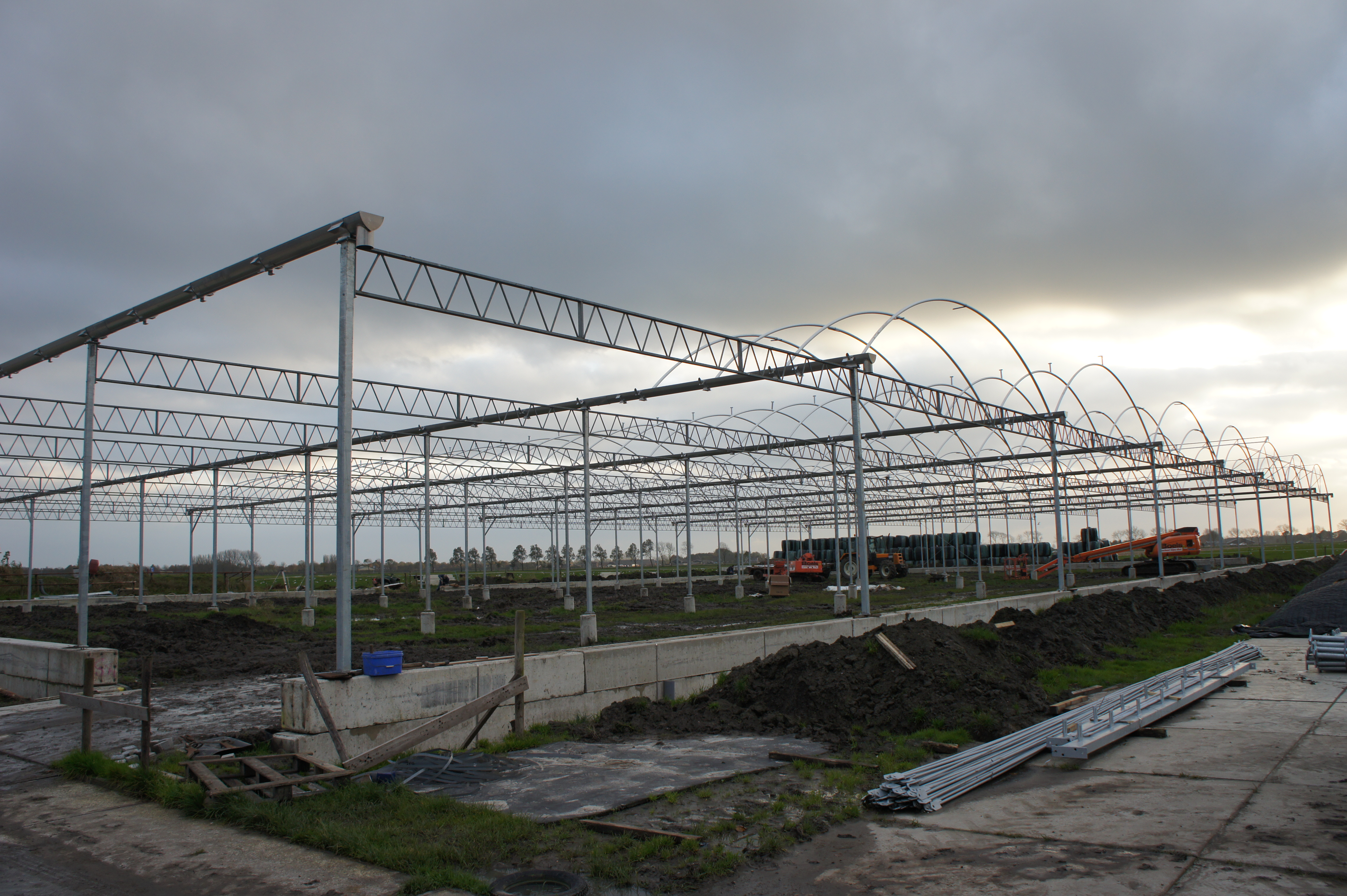 In september 2012 zijn we begonnen met de bouw van onze nieuwe stal. Het wordt een vrijloopstal van 42 meter breed en 77 meter diep. We hebben bewust gekozen voor het type stal waarbij de weide het meest benaderd wordt, omdat wij ernaar streven om het natuurlijke gedrag van de koeien zoveel mogelijk te stimuleren door daar ruimte voor te geven. De Wagyu’s zullen straks in de stal vrij rond lopen op een dikke laag compost.