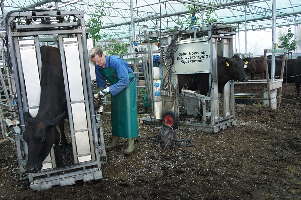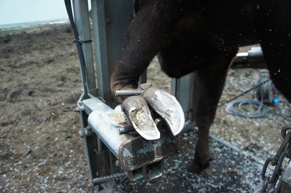 Afgelopen week zijn de eerste Wagyu-runderen naar buiten gegaan. Daarvoor zijn ze eerst nog behandeld door de klauwverzorgers (pedicure voor koeien). De buitenkant van de hoeven zijn weer mooi afgesneden en schoongemaakt, zodat de koeien geen last krijgen van hun klauwen. Zie onderstaande foto’s.