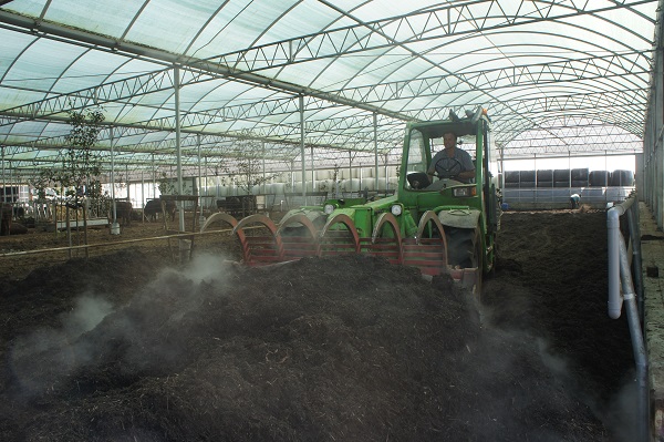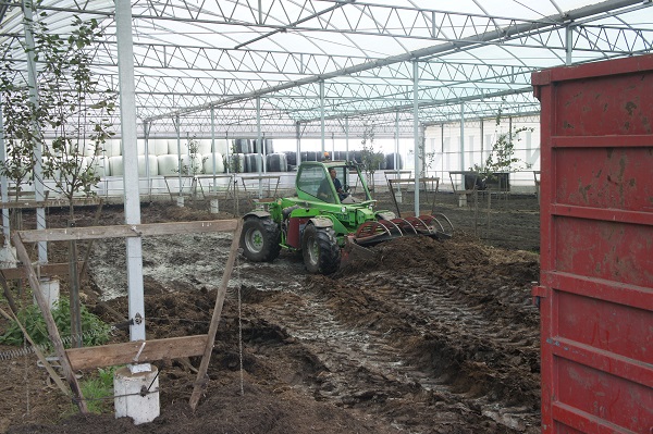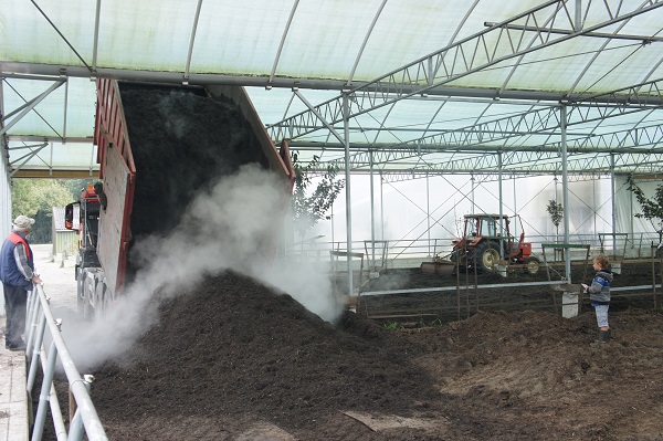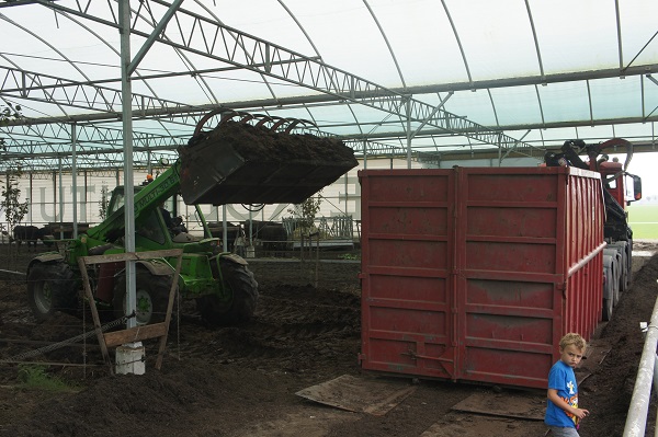 Het uitrijden van de compost was een enorme klus. We zijn 7 hele werkdagen bezig geweest, maar dan is er ook meer dan 1000 ton afgevoerd. De compost is naar plantenkwekers gegaan, die met deze zeer mooie verrijkte en zeer vruchtbare compost de grond kunnen verbeteren. Een klein deel hebben we over ons eigen land uitgestrooid, ook voor grondverbetering.